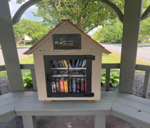 Our lending library was designed and built by one of our residents. It is located inside the gazebo near the corner of Frankfort Main and Higley Court. Founders Place Lending Library has both adult and children’s books that have been donated! Take a book to read; return it when you are finished reading it -or- share it with a friend. If you have a book that you would like to donate, feel free to place it in the Founders Place Lending Library. There is a special place for dog treats for our “furry friends.”
